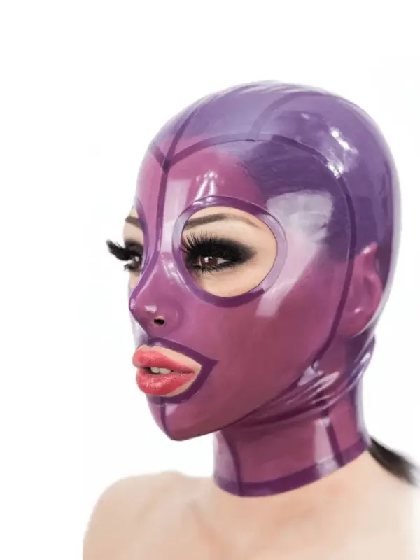 Purple Latex Cat Hood with Trimmed Eyes and Ears – Zipper Back Design