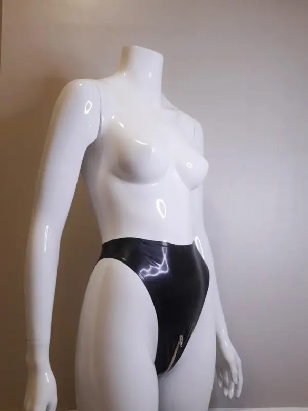 Extreme High-Waist Latex Thong with Full-Length Crotch Zip
