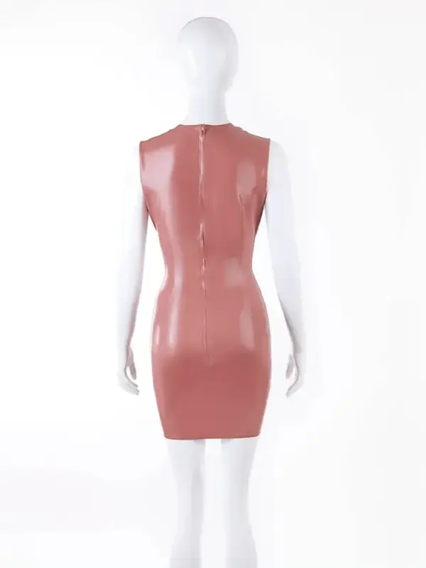 • -41% Deep V-Cut Latex Mini Dress with Rear Zipper