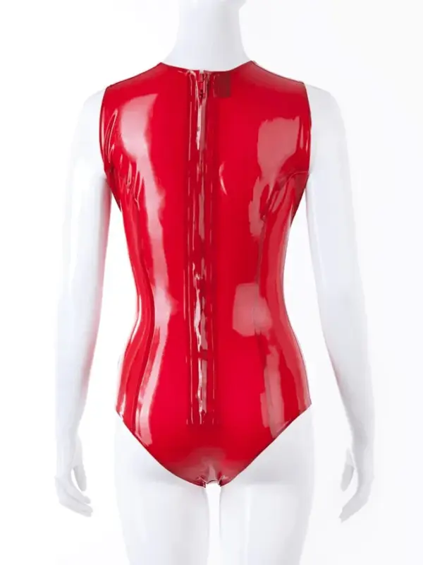 Deep V Cleavage Red Latex Bodysuit – Back Zipper Design