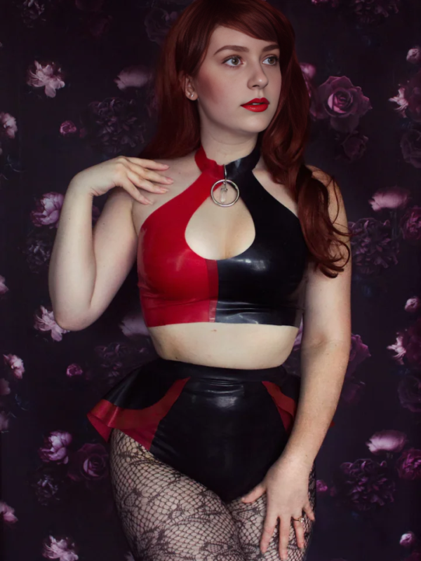 Harley Quinn Style Latex Keyhole Bikini Set with Ring Detail