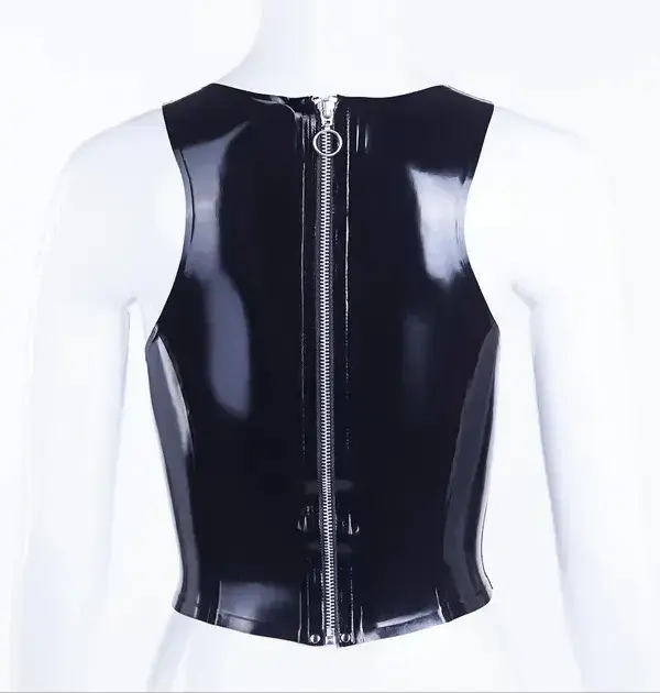 Lucy Latex Sleeveless Top with O-Ring Zip & Teardrop Cutout