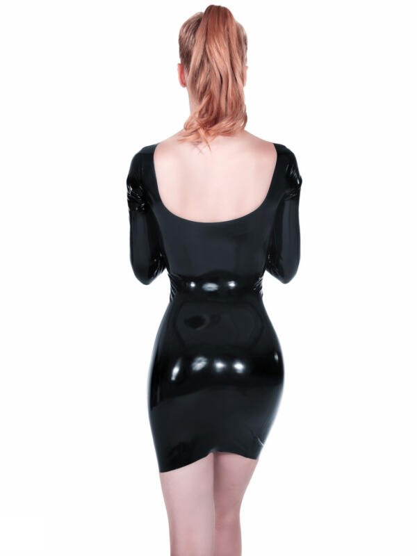 Elegant Black Latex Pencil Dress with Long Sleeves and Open Neckline