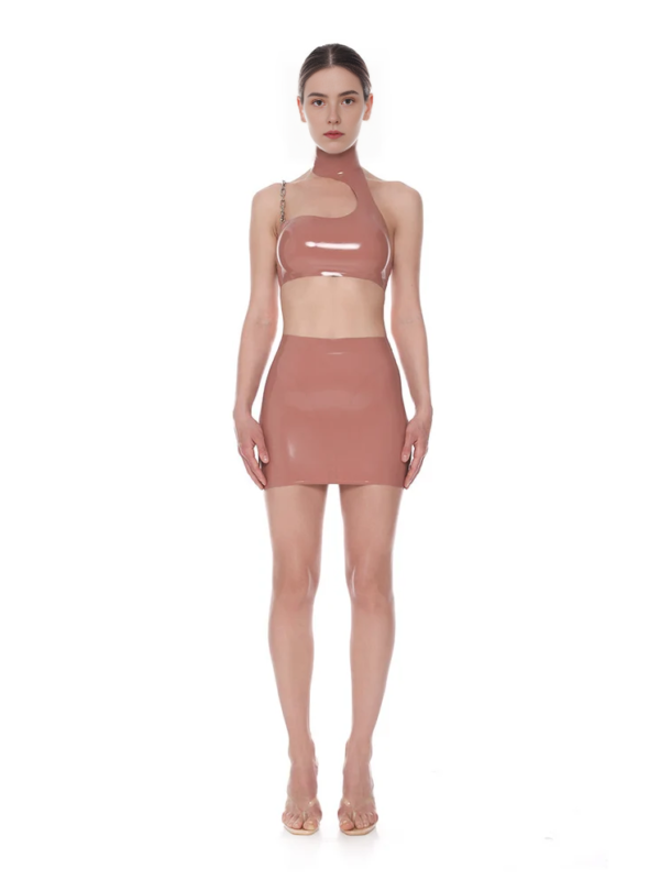• -31% Asymmetric Latex Crop Top with Detachable Chain Strap and High Collar